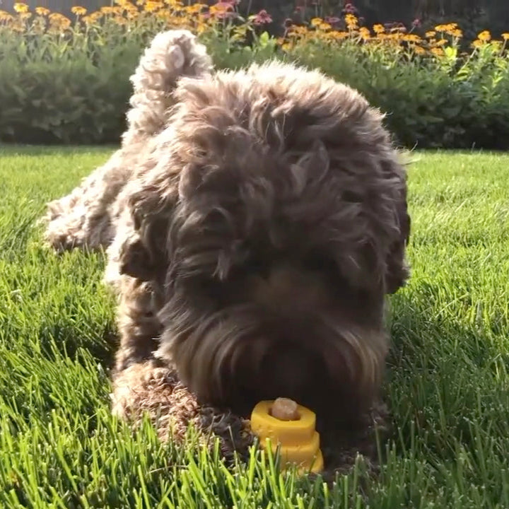 Amazingly well-designed toys and treats that work together—they keep my dog busy for a super long time! And I really love the bright yellow color!