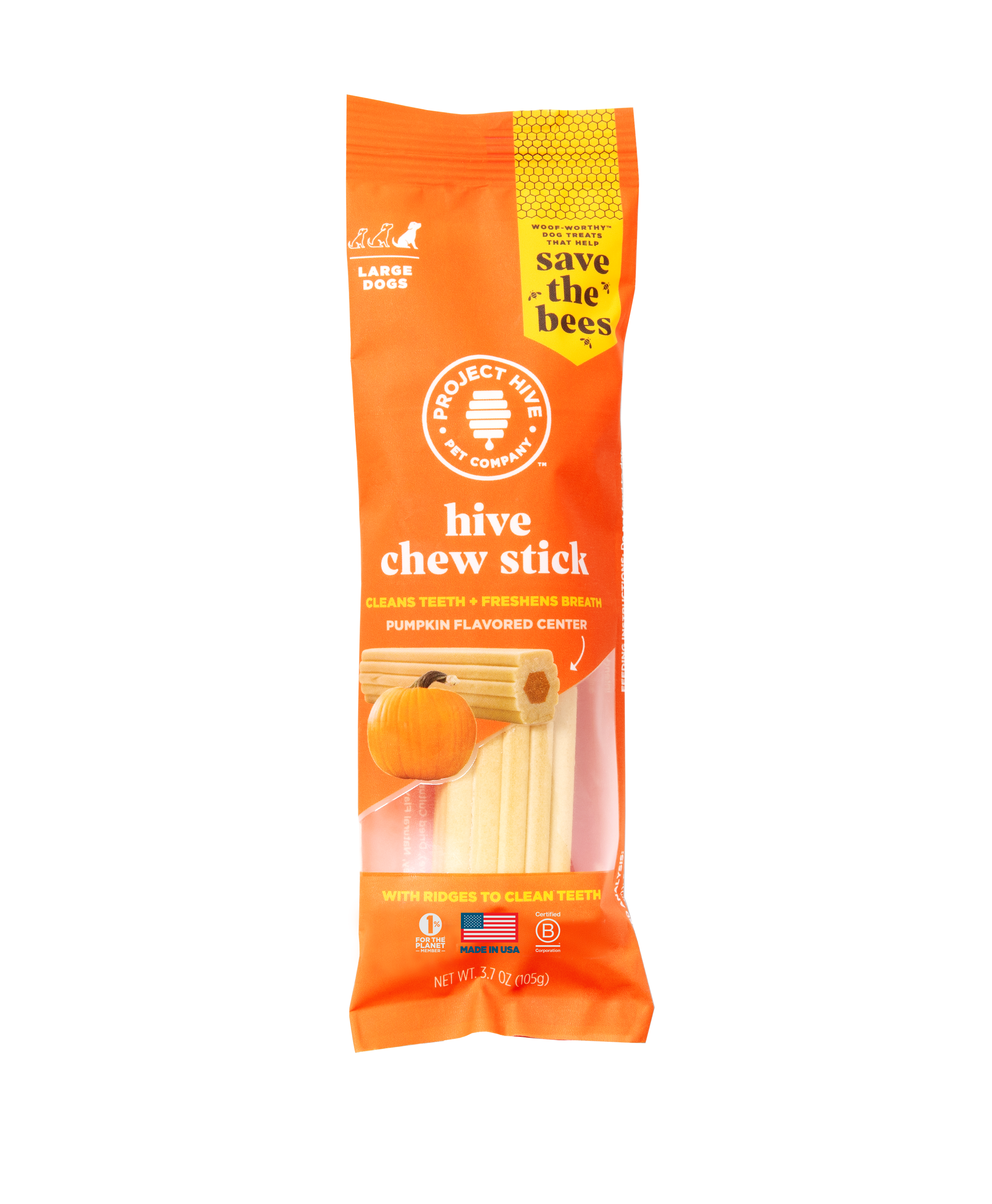 Do you have a large dog? Project Hive is buzzing with excitement over this new Hive Chew Stick with a pumpkin center, now available in size XL for larger dogs!